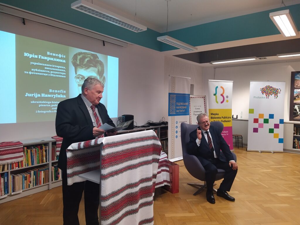 Це була нагода вшанувати виняткову постять національного українського відродження на Підляшші – особу, яка з початку 80-х рр. ХХ ст. бере активну участь у процесах будування української нації серед православних україномовних підляшан. Йдеться про Юрія Гаврилюка – українського історика, письменника, публіциста, головного редактора Українського часопису Підляшшя «Над Бугом і Нарвою» та фотомитця з Підляшшя.